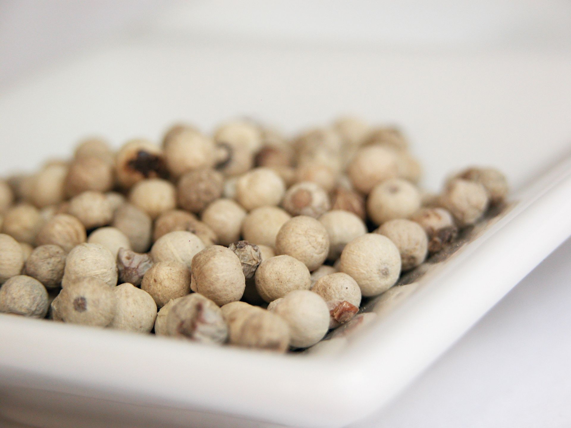 Verwechslung: Heller Pfeffer ist maschinell geschälter, schwarzer Pfeffer und vom Reifegrad nicht zu vergleichen mit echtem weißen Pfeffer.