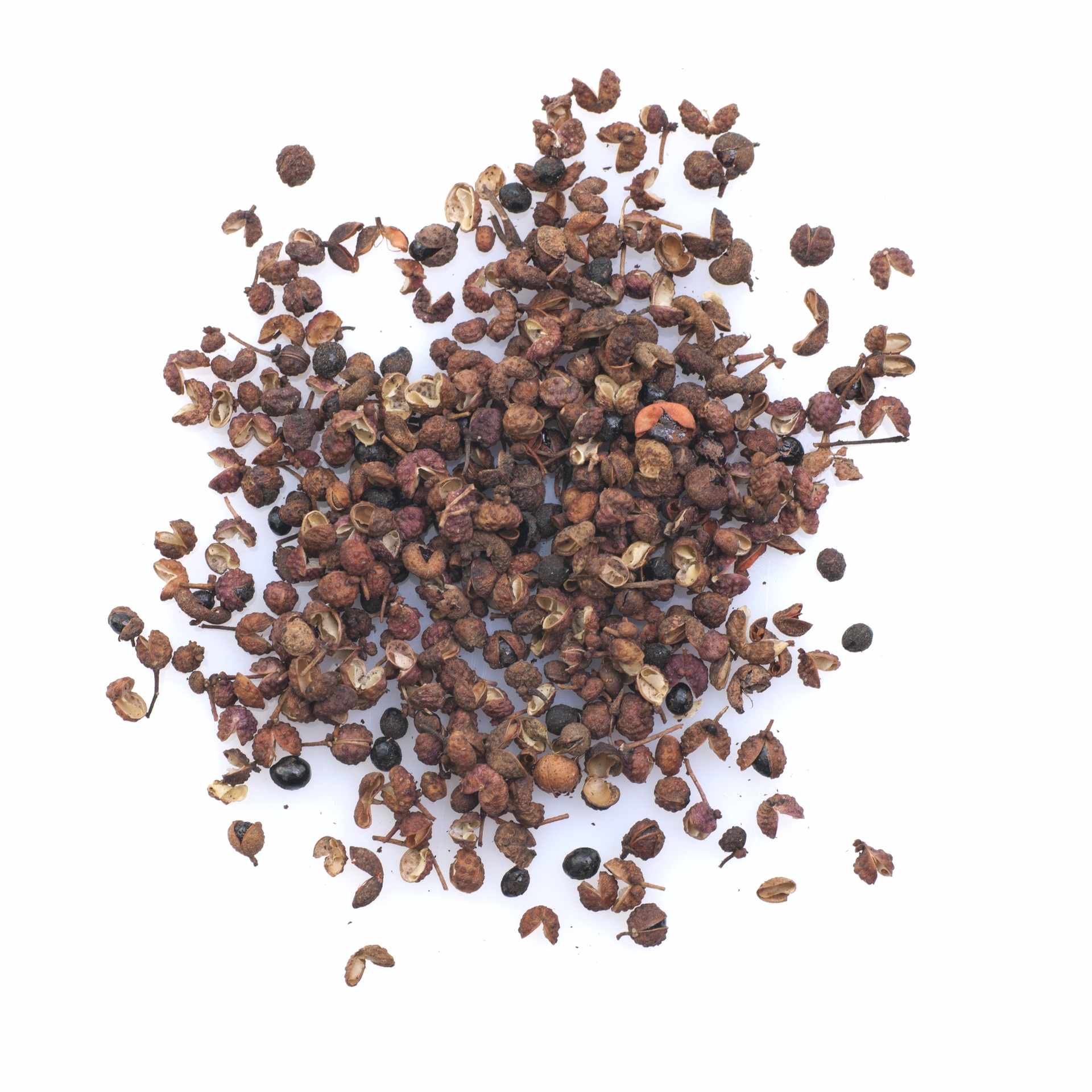 Aromaträger: Aromaträger des Szechuan Pfeffers ist nicht, wie bei allen sonstigen Pfeffersorten, der Samen, sondern vielmehr die Schale. Sie ist für die Geschmacks- und Aromagebung verantwortlich.