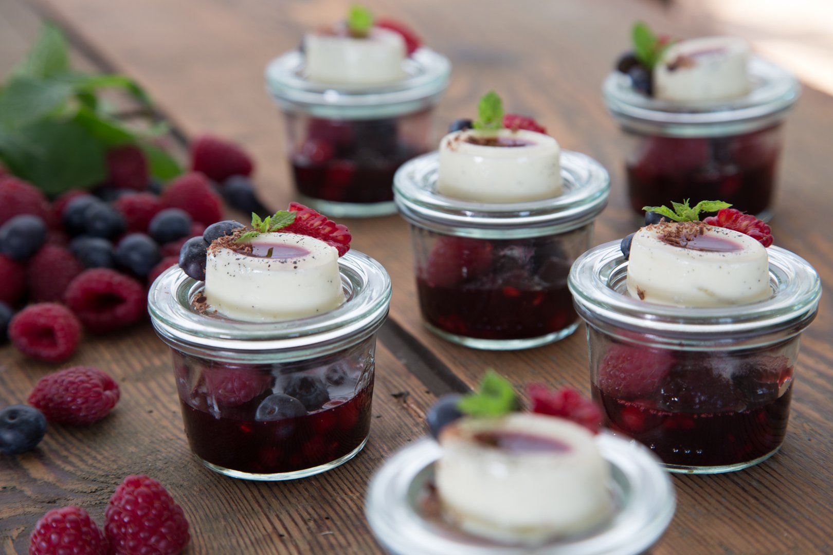 Limonen-Pannacotta mit Beerenragout